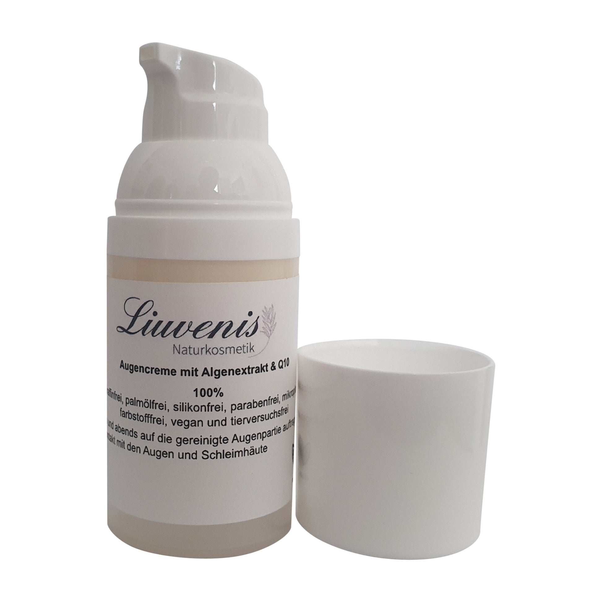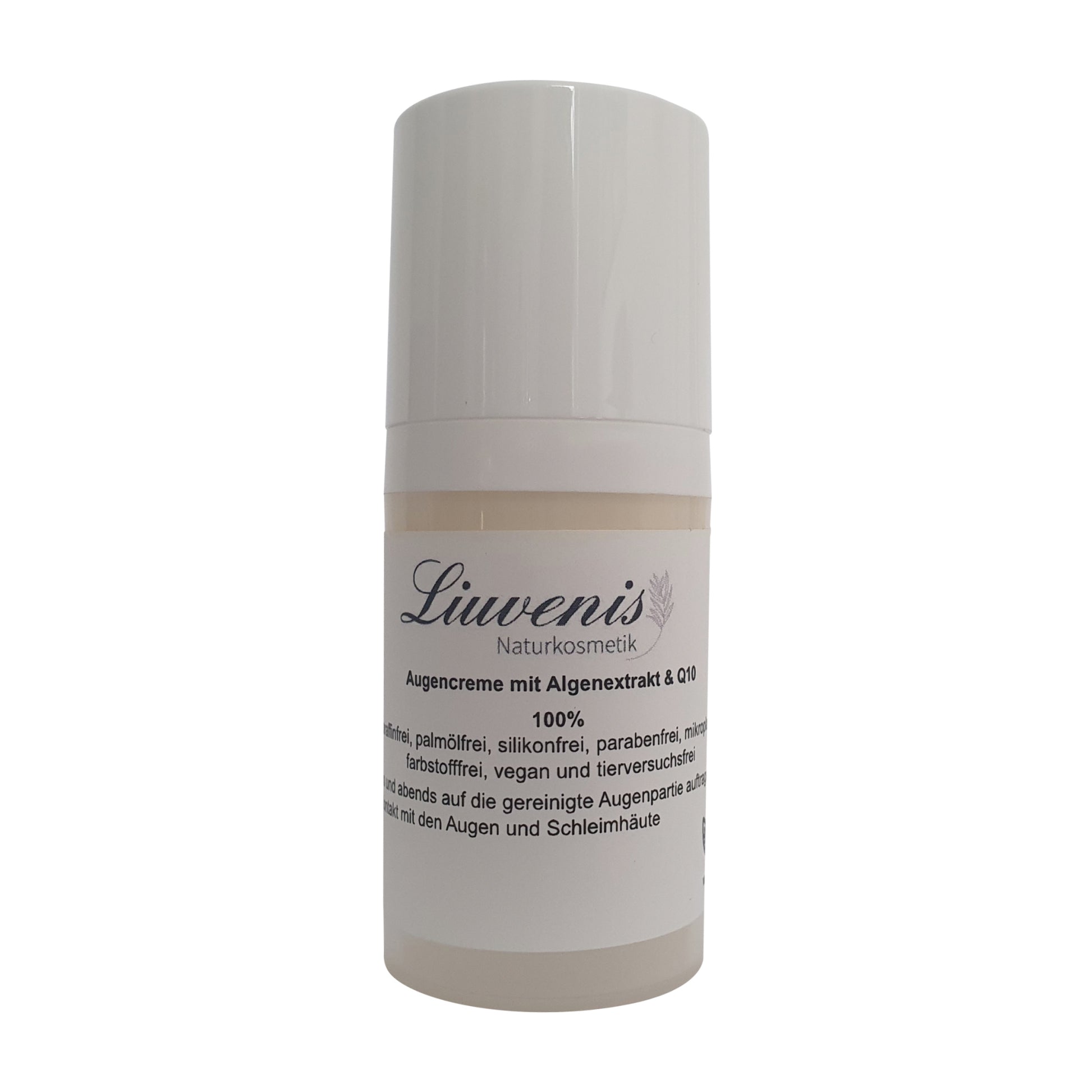 Die Augencreme von Liuvenis ist eine hochgradig feuchtigkeitsspendende Formel mit Bio-Cistrosenhydrolat, Hyaluronsäure (hoch- und niedermolekular), Algenextrakt und Kaffeeöl, welche speziell gegen den Alterungsprozess rund um die sensible Haut der Augen konzipiert wurde. Ausgewählte Lipide, Pflanzenextrakte, hochwertige Öle und hochdosierte Wirkstoffe sorgen für die Straffung der Augenkonturen sowie Linien und Falten werden sichtbar reduziert. Bei dauerhafter Anwendung werden Augenschwellungen, Augenringe und schlaffe Lider deutlich weniger. Für mehr Strahlkraft bildet die reichhaltige Rezeptur eine schützende Barriere um das Auge und sorgt für eine nachhaltige Verbesserung der Hautstruktur.