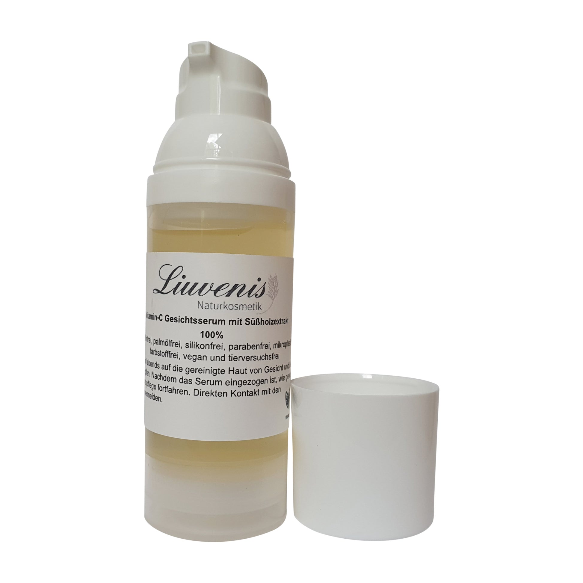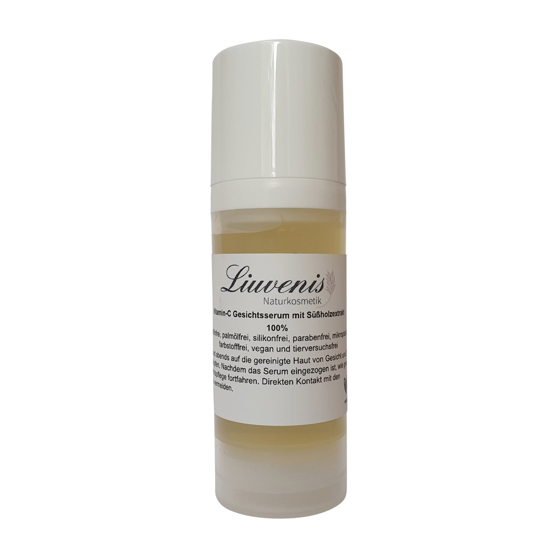Das Liuvenis Vitamin-C Gesichtsserum mit Süßholzextrakt hilft nachhaltig Alters- bzw. Pigmentflecken und Pickelmale zu reduzieren. Das Serum wirkt antioxidativ und verlangsamt somit effektiv den Alterungsprozess der Haut. Das enthaltene natürlich vorkommende Vitamin-C ist eines der hautfreundlichsten und wirkungsvollsten Vitamin-C Derivate. Es kann die Epidermis (Oberhaut) der Haut durchdringen ohne Irritationen hervorzurufen. Süßholzextrakt gleicht dank der Flavonoide den Teint aus und sorgt obendrein für die körpereigene Kollagenproduktion.